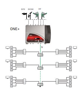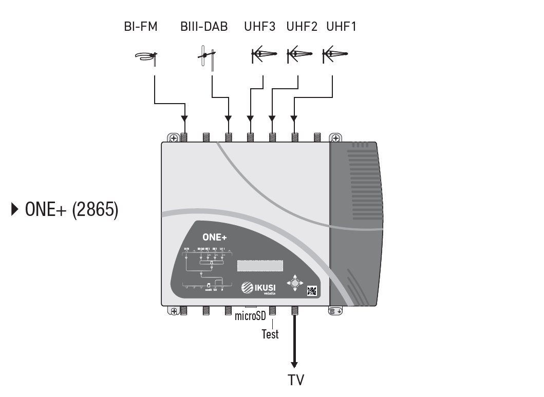 FAGOR (IKUSI) ONE+ je uživatelsky jednoduchý programovatelný filtrový zesilovač a kanálový procesor (převodník) pro pozemní signály. Vysoká výstupní úroveň, celkem 32 filtrů, kanálová konverze, vysoká selektivita, automaticky potlačené LTE pásmo.