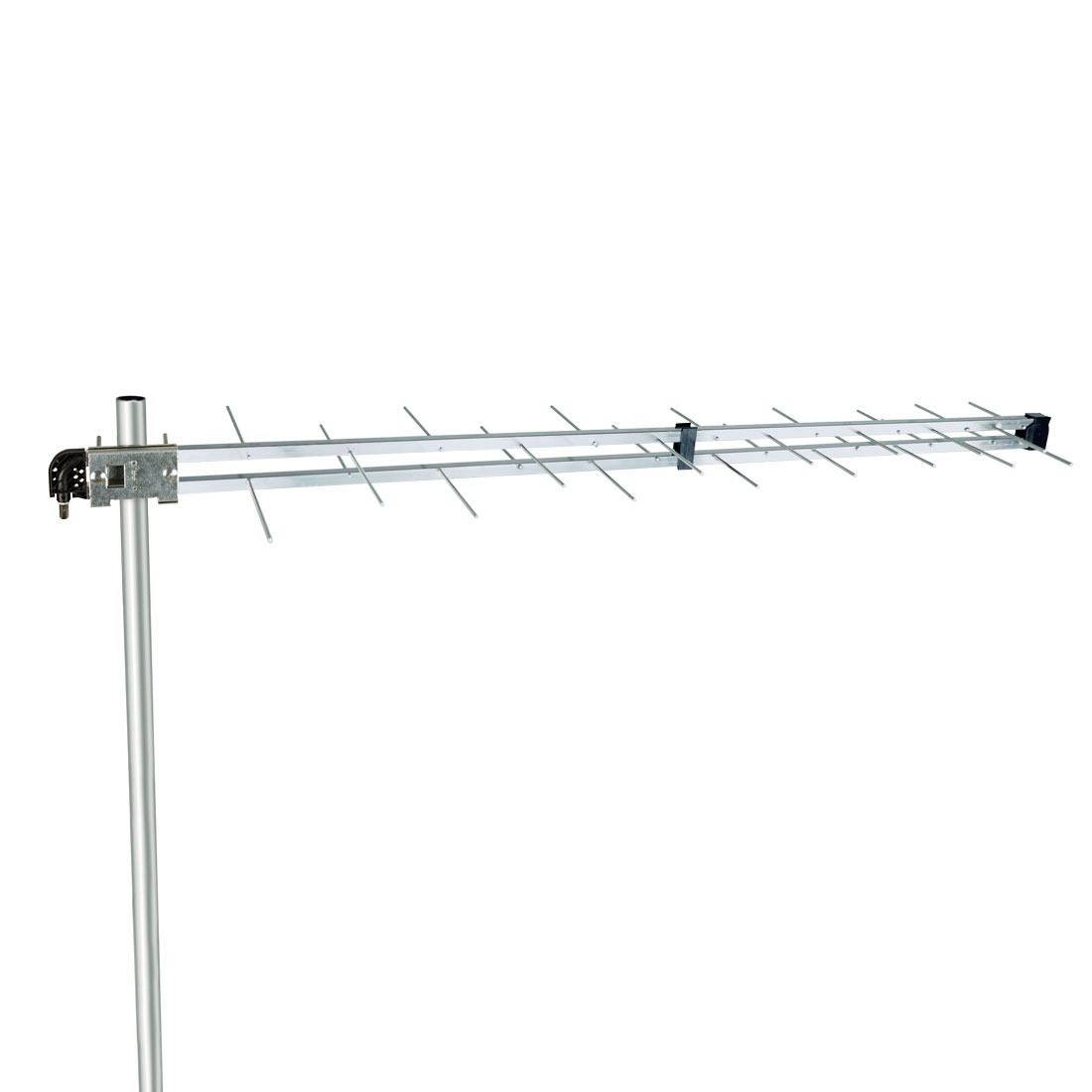 Díky speciálnímu uchycení na stožár lze anténu instalovat ve vertikální i horizontální polarizaci bez adaptérů nebo jiného příslušenství. Součástí balení je krytka F konektoru. Velmi snadné připojením díky konektoru F umístěnému v blízkosti svorky stožáru.