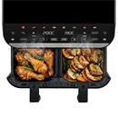 Fritéza je vybavena dvěma koši, každý s objemem 4.5 litru. Umožňuje připravit dva různé pokrmy současně bez vzájemného přenosu chutí. Každý koš má průzorové okénko a osvětlení, takže můžete sledovat průběh vaření bez otevírání fritézy.