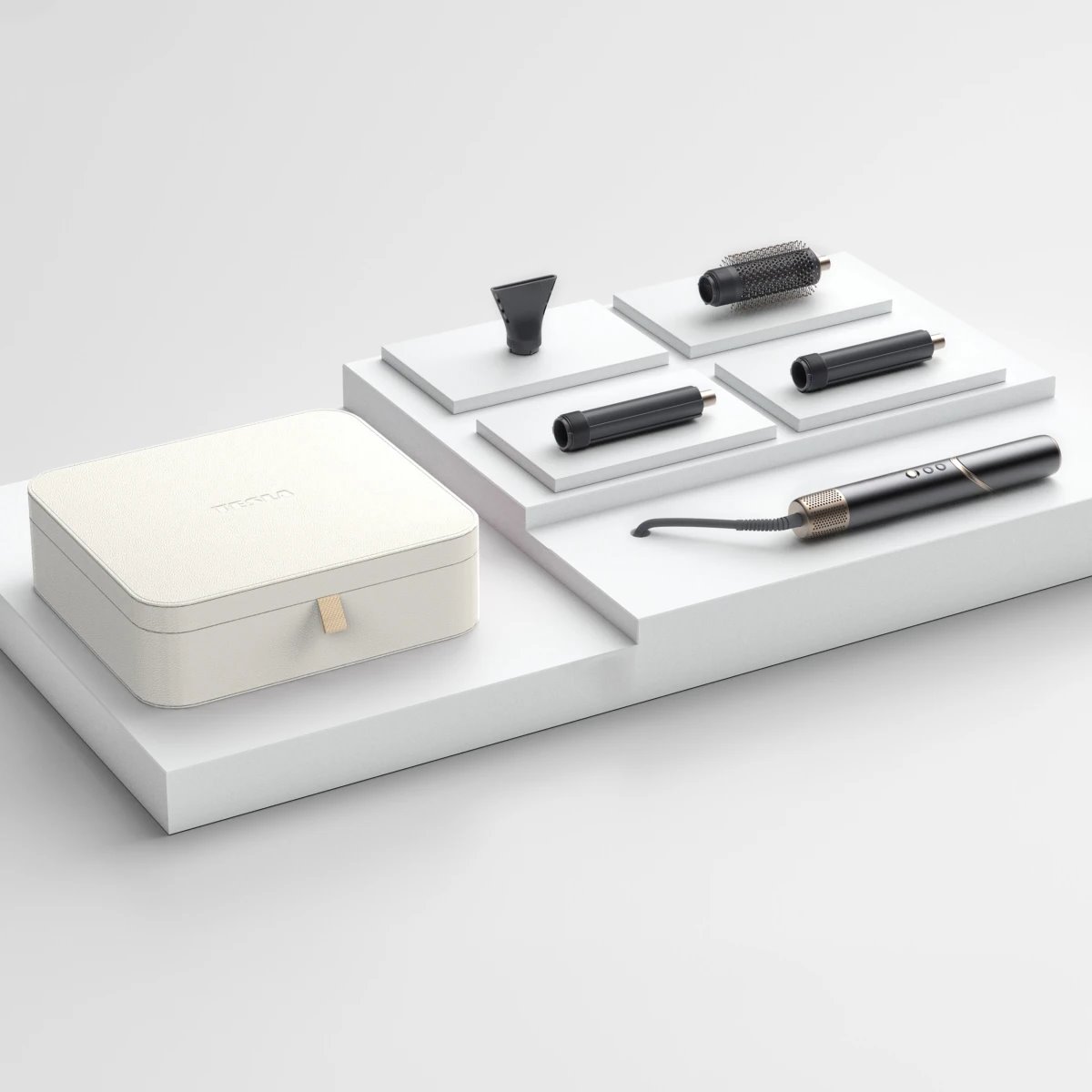 Fén se přizpůsobí vašemu stylu i náladě. Součástí balení jsou čtyři nástavce – koncentrátor pro cílené vysoušení, tvarovací kartáč pro uhlazení a dva nástavce na vlny (levý a pravý) pro přirozené natočení vlasů proudem vzduchu. Bez složité manipulace tak snadno vytvoříte hladký účes, objem i jemné vlny – jedním přístrojem, bez nutnosti dalších pomůcek.