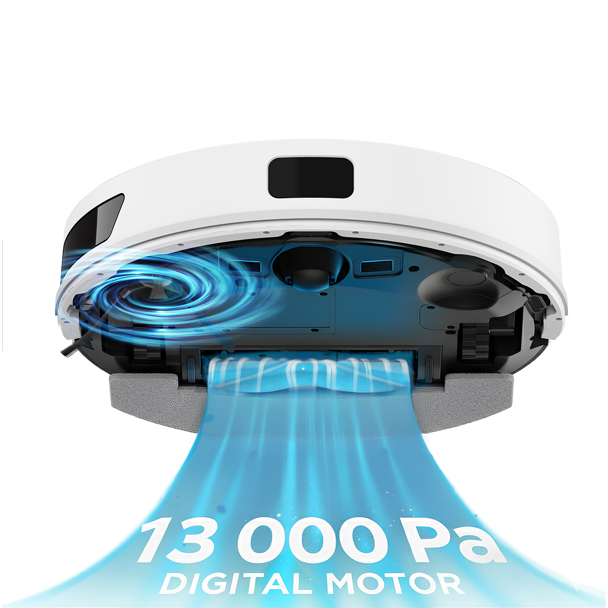 Robotický vysavač je vybaven silným 13 000 Pa sacím digitálním motorem. Inteligentní řízení výkonu, se postará o automatickou regulaci sacího výkonu. Pokud senzory detekují koberec, automaticky se zvýší sací výkon pro hloubkové čištění koberců.