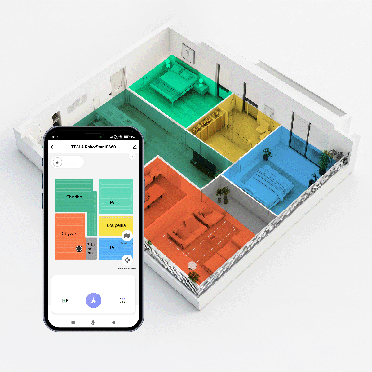 TESLA RoboStar iQ660 je skvěle přizpůsobený českým zákazníkům. Příjemný český hlasový doprovod oznamuje okamžitý stav a pohyb vysavače, který je monitorován s pomocí inteligentní diagnostiky. Aplikace TESLA Smart pro smartphone v češtině je dostupná pro Android a iOS.
